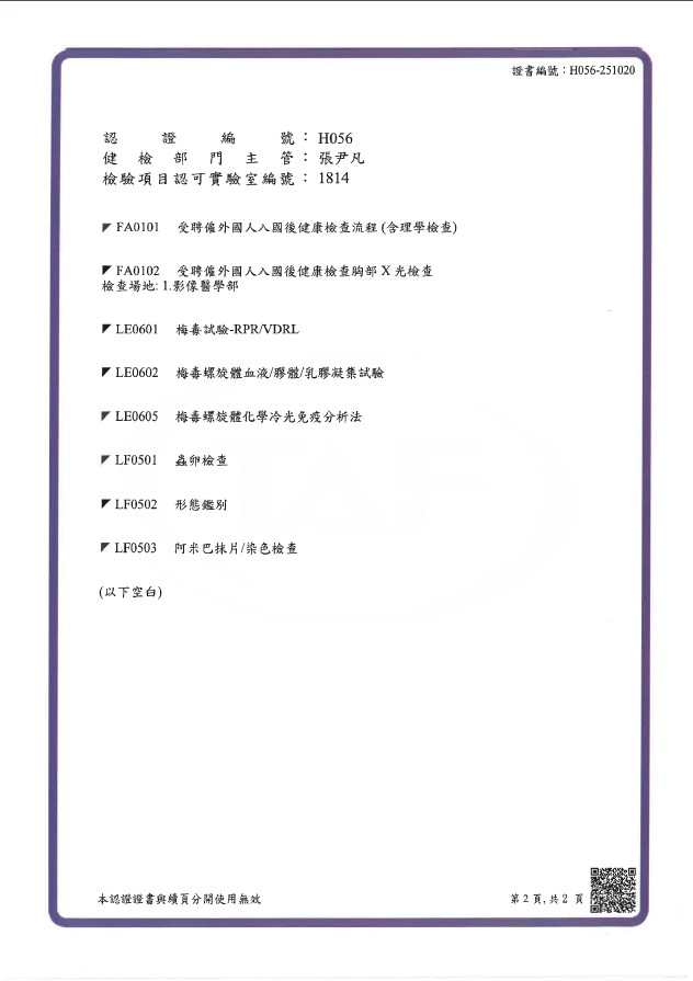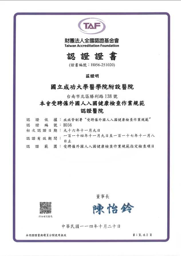 ***本院通過受聘僱外國人入國健康檢查作業規範認證***